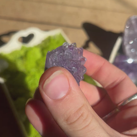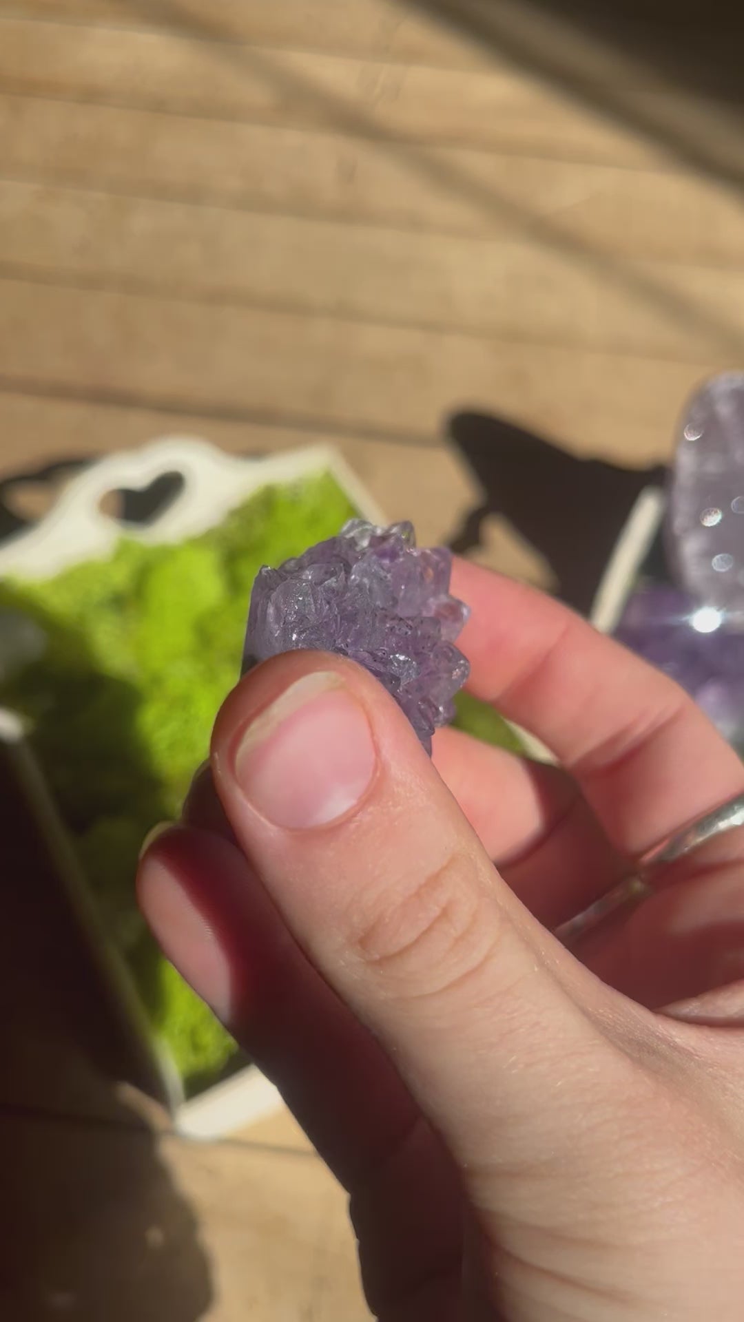 Introducing Amethyst Stalactite Eyes - the perfect accessory for adding a playful pop of color to any outfit! With their unique amethyst stalactite design, these eyes are sure to make a statement. Don't miss out on the opportunity to add some fun to your look.