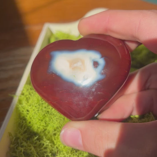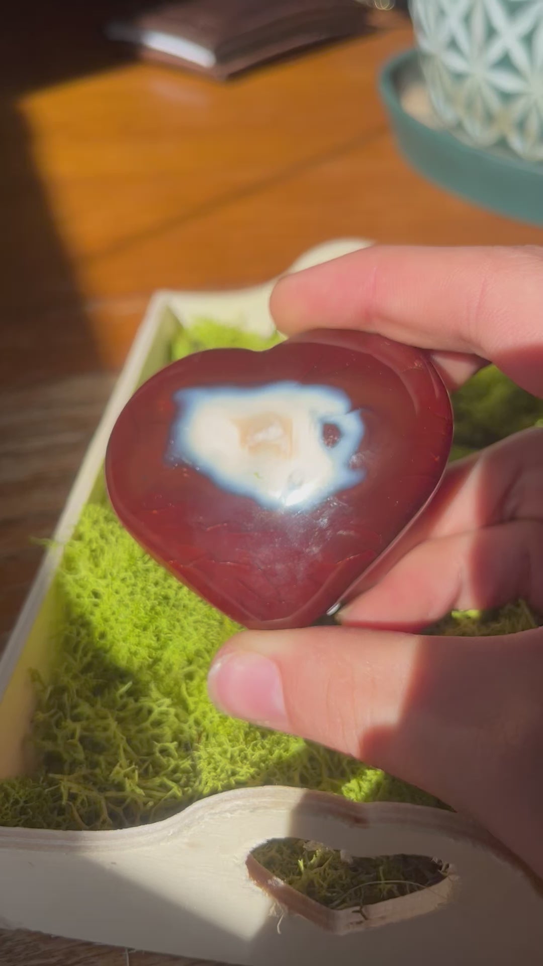 Unlock the healing power of Carnelian with our Orca Agate Heart. Known for its ability to increase motivation and restore vitality, this unique heart-shaped stone is a must-have for any crystal collection. Let it guide you towards strength and inner peace. Weighs 110 grams.