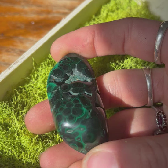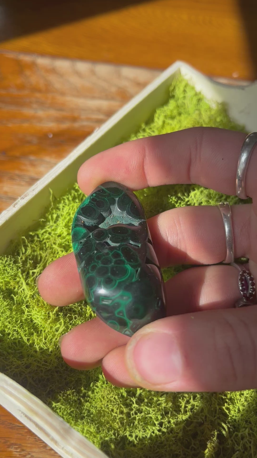 Take a trip to the dazzling Democratic Republic of Congo with our Chatoyant Malachite. This unique stone has chatoyancy, meaning it shimmers and dances in the light. Harness its healing properties to promote emotional balance and mental clarity. (You'll feel like a gem!)