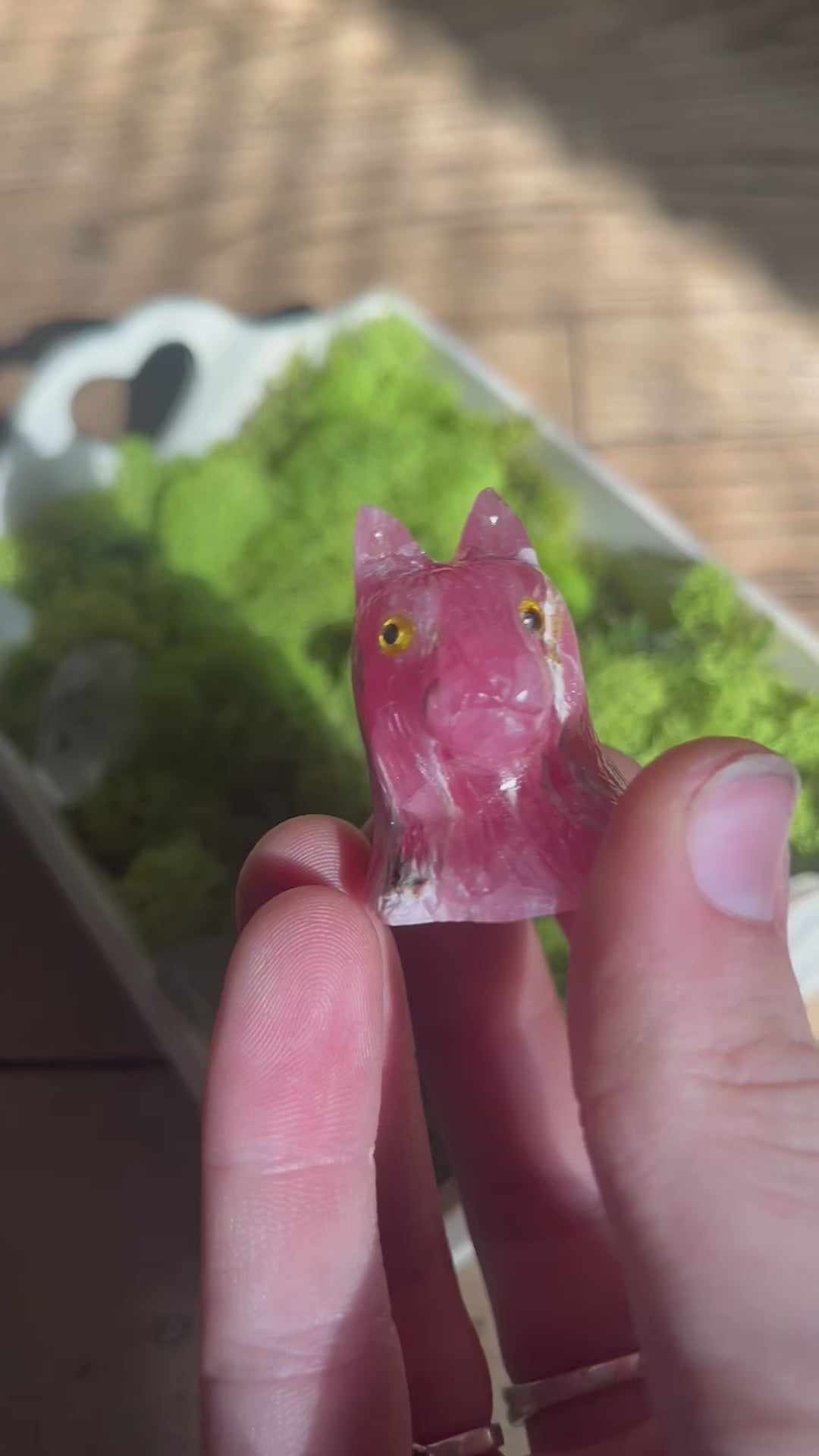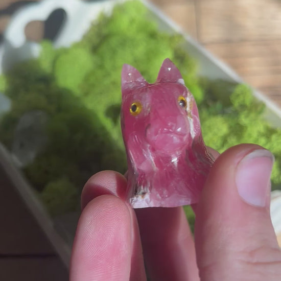 This fierce Rhodochrosite Wolf Carving not only adds a touch of wilderness to any space, but also brings the powerful healing properties of Rhodochrosite. Let this unique and playful piece be a reminder to embrace our wild side and heal from within.