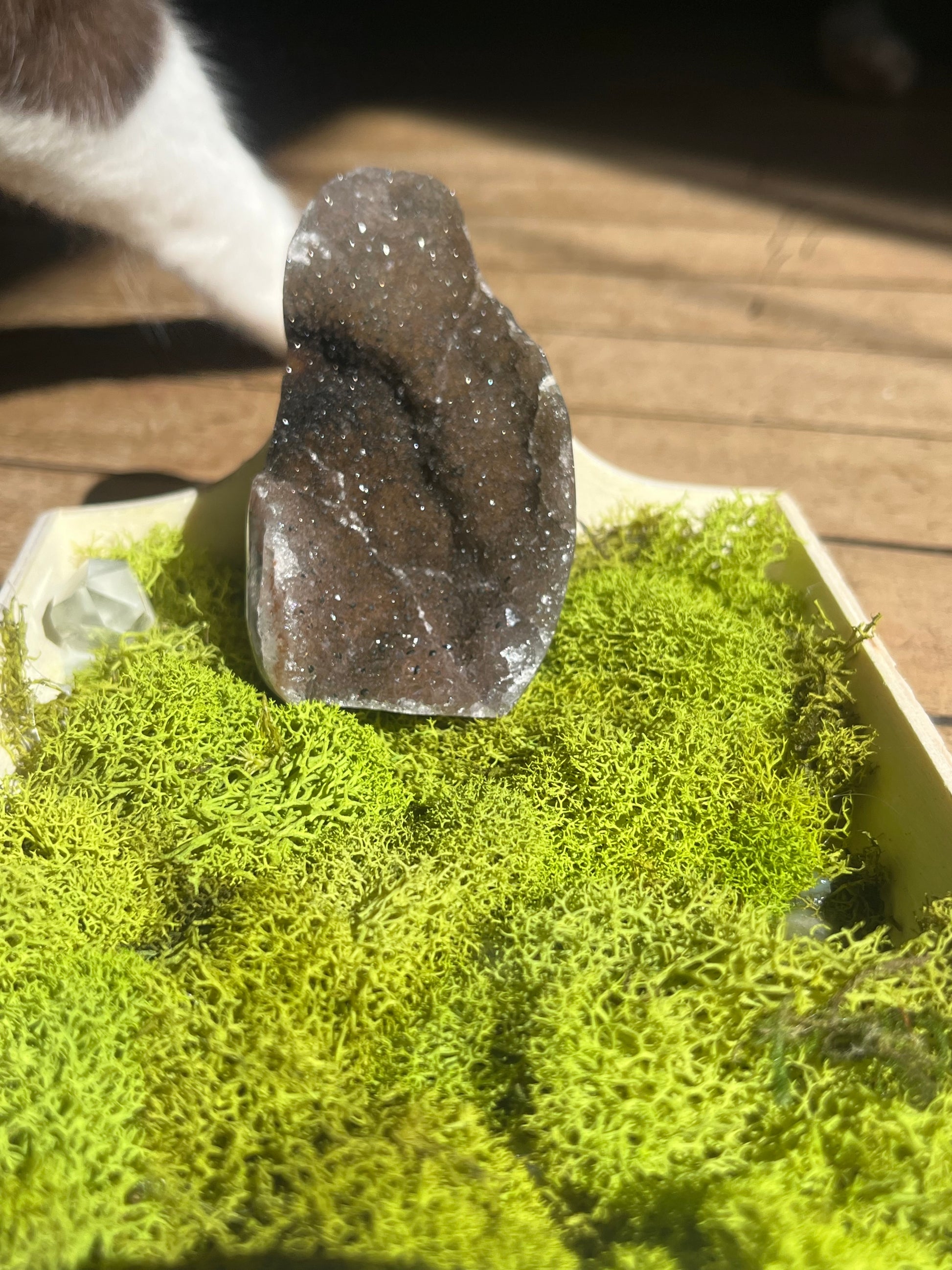Add a touch of sparkle to your life with our Sparkly Brown Amethyst from Uraguay. This crystal not only adds an aesthetic appeal, but also has powerful healing properties. Bring balance and positive energy into your space with this unique and beautiful piece. Weighs 125 Grams!