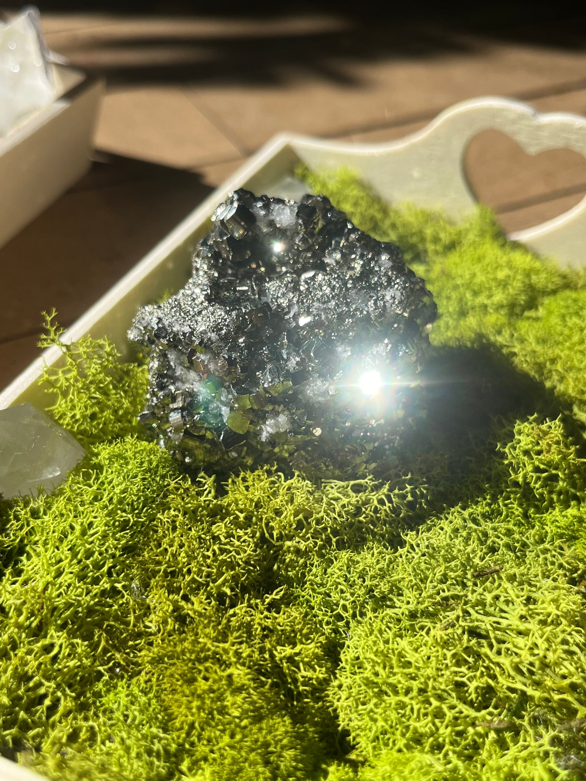Introducing the Sparkly Pyrite Puffball from Peru - this unique product features pyrite healing properties that can increase confidence, promote positive energy, and attract abundance. Bring a touch of sparkle and positive vibes into your life with this one-of-a-kind item.